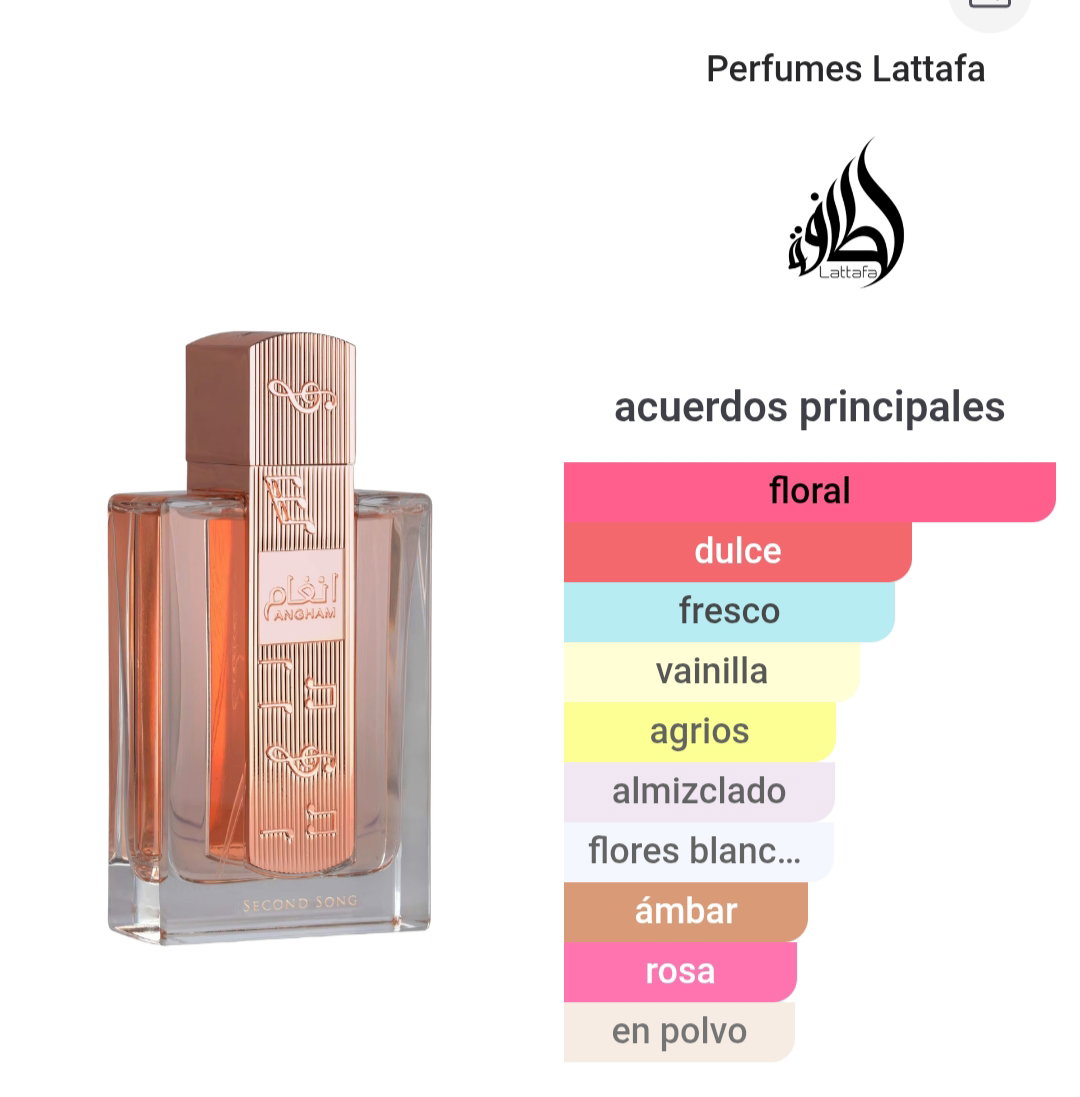 Angham Second Song de Lattafa es una fragancia femenina lanzada en 2026, diseñada como un flanker del popular Angham original.