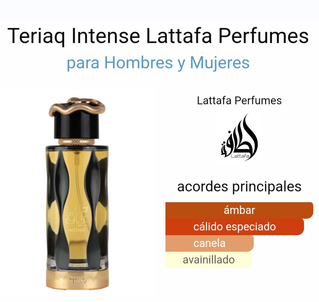 🐉Teriaq Intense de Lattafa Perfumes es una embriagadora fragancia de la familia olfativa Oriental Especiada para Hombres y Mujeres.