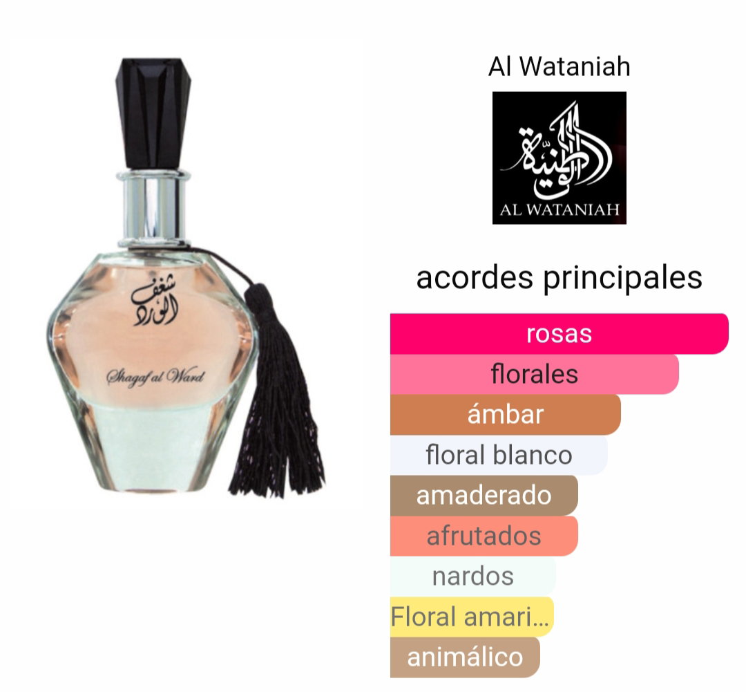 Shagaf Al Ward de Al Wataniah es una elegante y espectacular fragancia de la familia olfativa Oriental Floral para Mujeres.