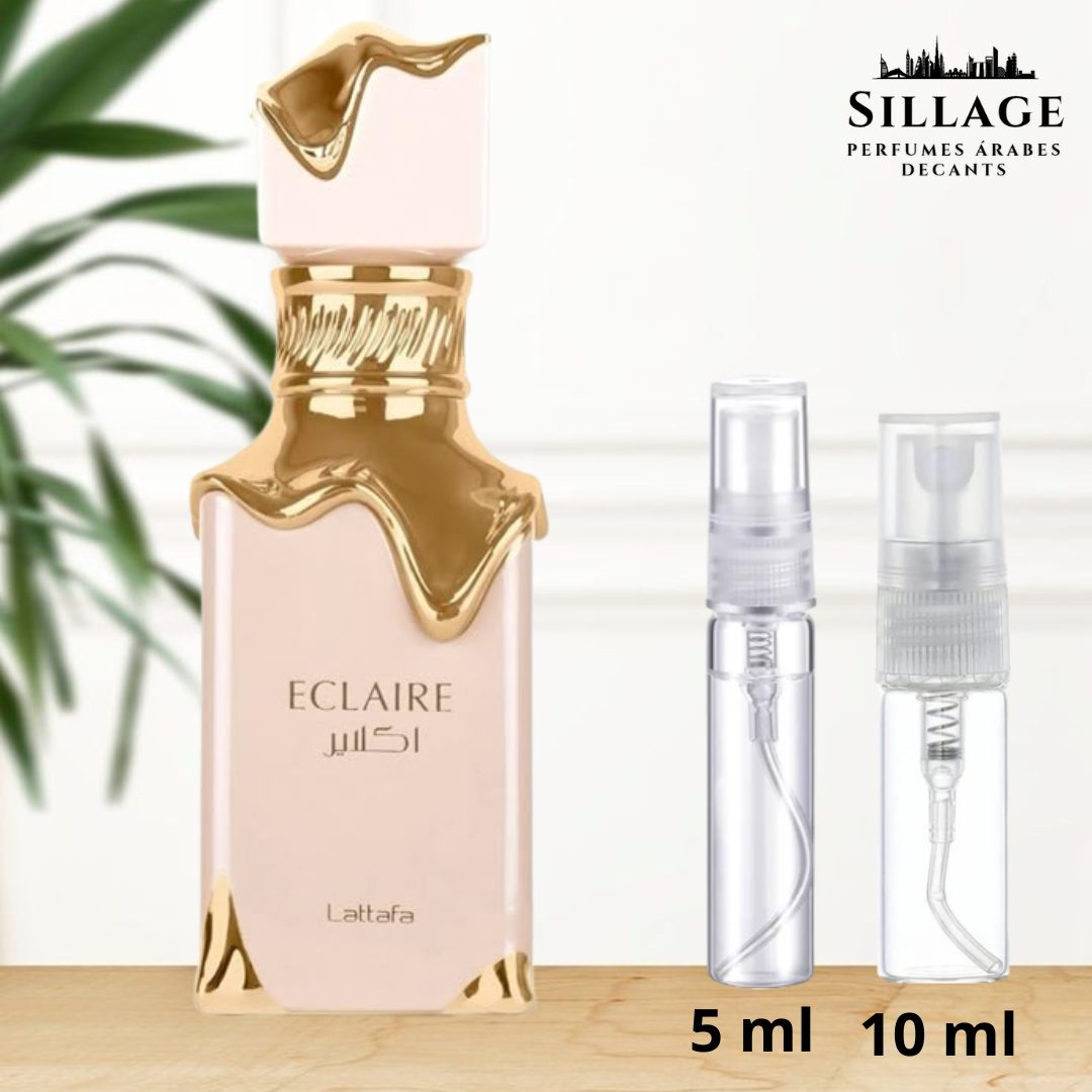 Eclaire de Lattafa Perfumes es una exquisita fragancia de la familia olfativa Floral Frutal Gourmand para Mujeres inspirada en la costosa Bianco Latte de Giardini di Toscana.