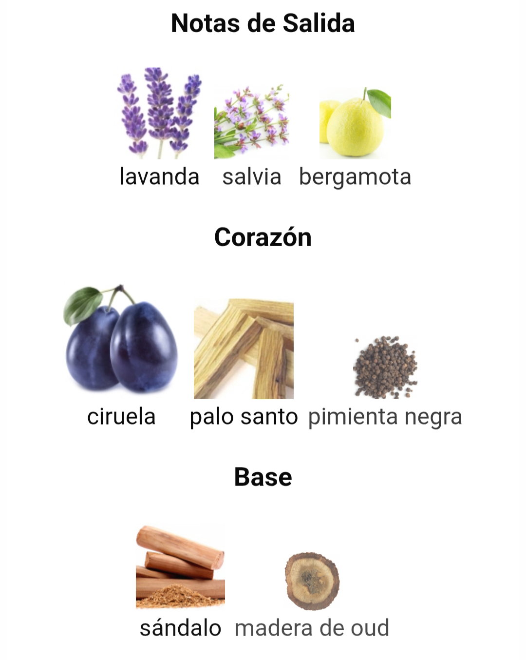 ✔️Notas de Corazón: Ciruela, Palo Santo, Pimienta Negra