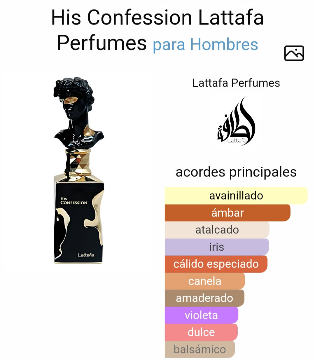 His Confession es una fragancia audaz y cautivadora que encarna la masculinidad moderna. Se abre con una refrescante y especiada mezcla de mandarina, canela y lavanda, creando una entrada vigorizante que capta la atención de inmediato. A medida que la fragancia se desarrolla, revela un rico corazón de iris, ciprés y benjuí, que aporta profundidad y sofisticación. La composición se sustenta en una cálida y sensual base de vainilla, haba tonka, pachulí, madera de cedro, incienso y ámbar, que deja una huella duradera y memorable. His Confession combina frescura y calidez, lo que la hace versátil para cualquier ocasión, ya sea de día o de noche. Esta fragancia es la elección perfecta para los hombres que buscan irradiar confianza, elegancia y un toque de misterio, asegurando así una impresión dondequiera que vayan.