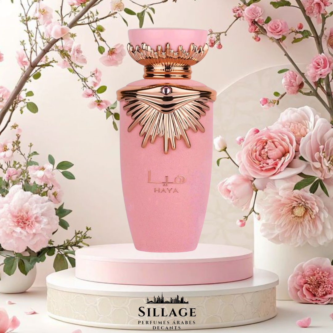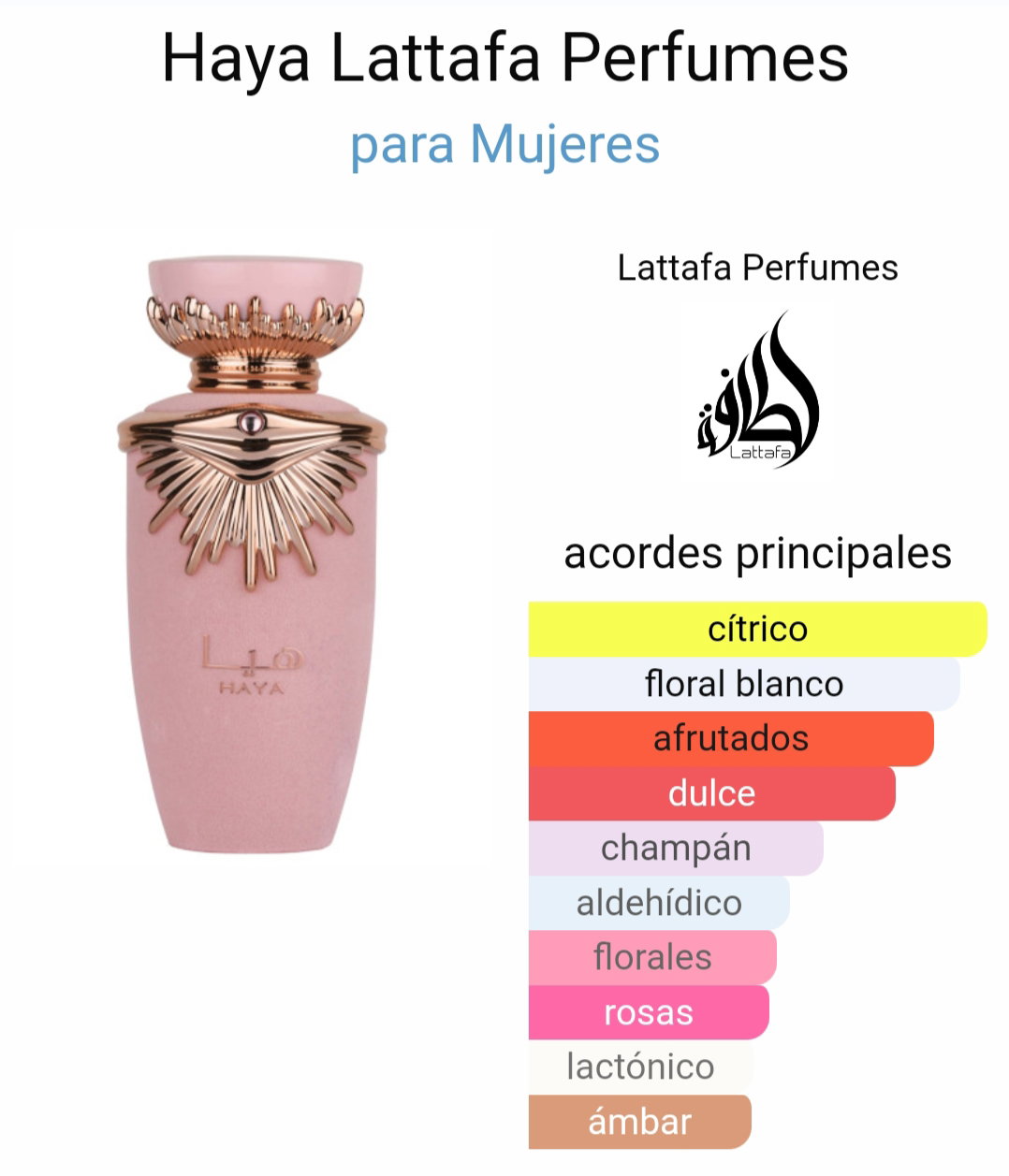 🩷 Haya de Lattafa es una exclusiva fragancia para mujeres que combina notas cítricas y florales, con el aroma fresco y chispeante del champagne 🥂