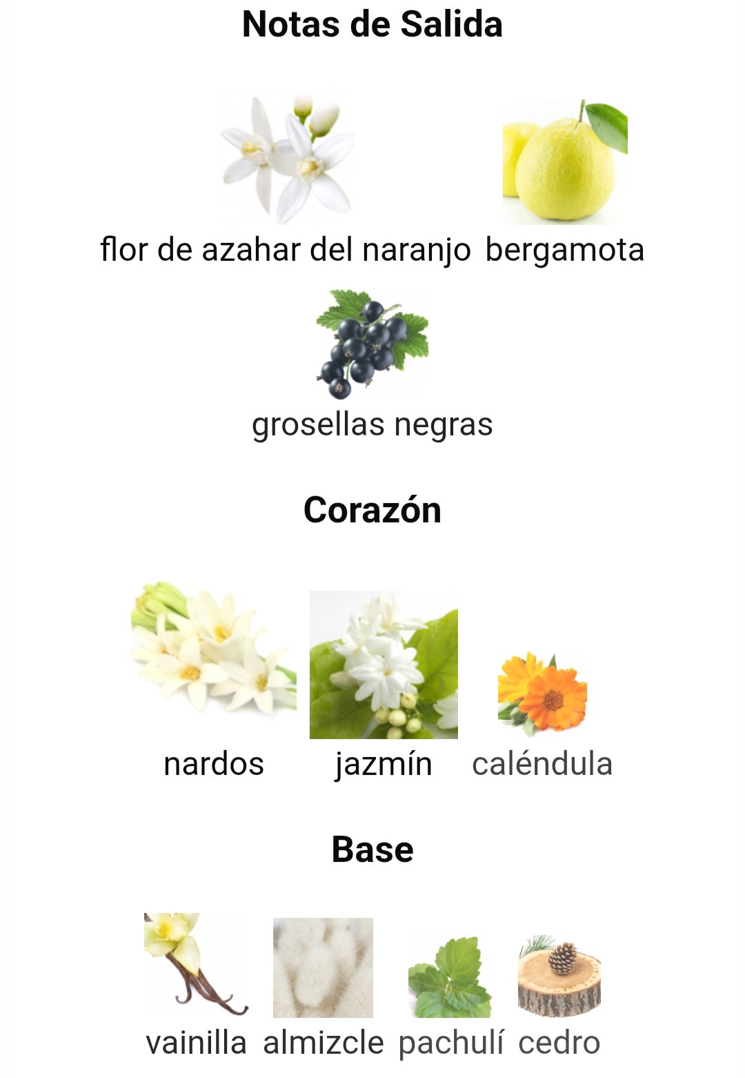✔️ Notas de Salida son flor de azahar del naranjo, bergamota y grosellas negras