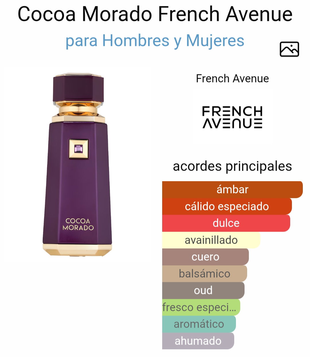 Cocoa Morado de French Avenue es una fragancia de la familia olfativa Oriental Amaderada para Hombres y Mujeres. La Nariz detrás de esta fragancia es Miroslav Petkov.