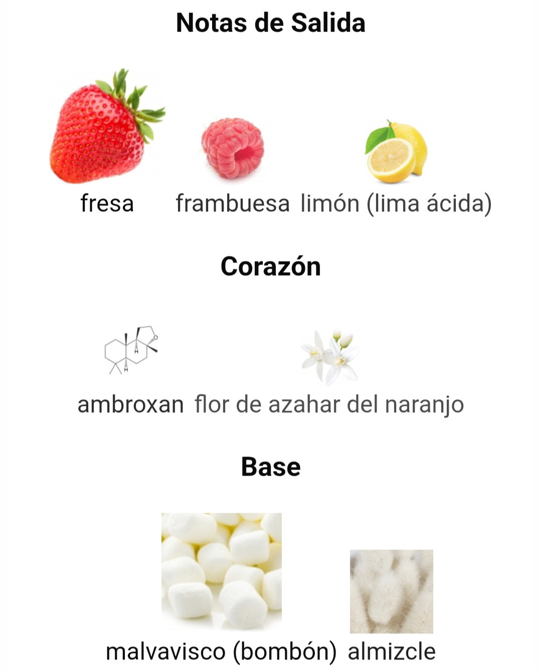 ✔️ Notas de Salida: fresa, frambuesa y limón (lima ácida)