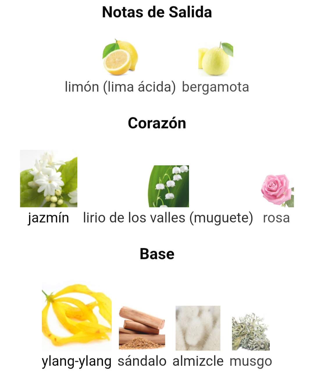 ✔️ Notas de Fondo: ylang-ylang, sándalo, almizcle y musgo.