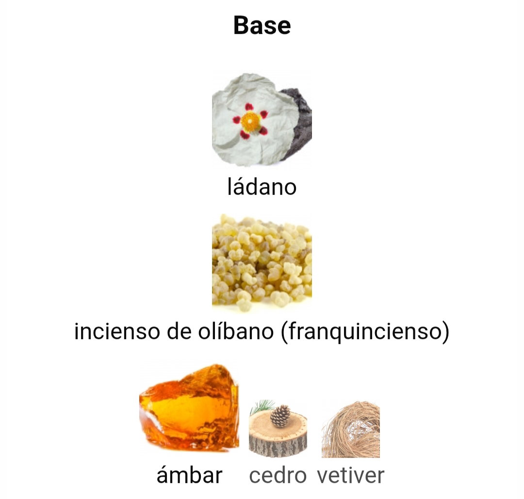 ✔️ Notas de Fondo. ládano, incienso de olíbano (franquincienso), ámbar, cedro y vetiver.