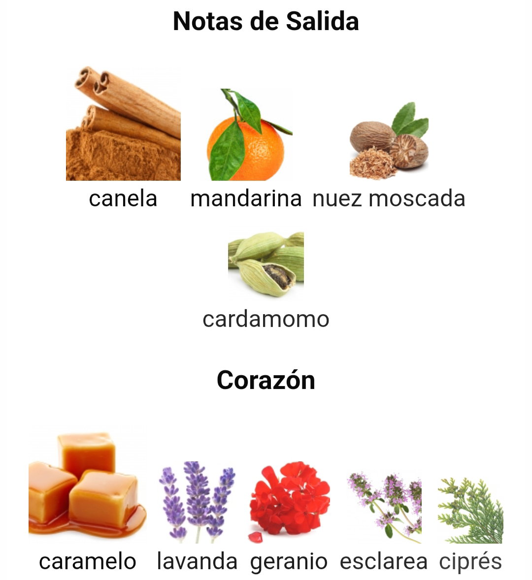 ✔️Notas de Salida: canela, mandarina, nuez moscada y cardamomo;