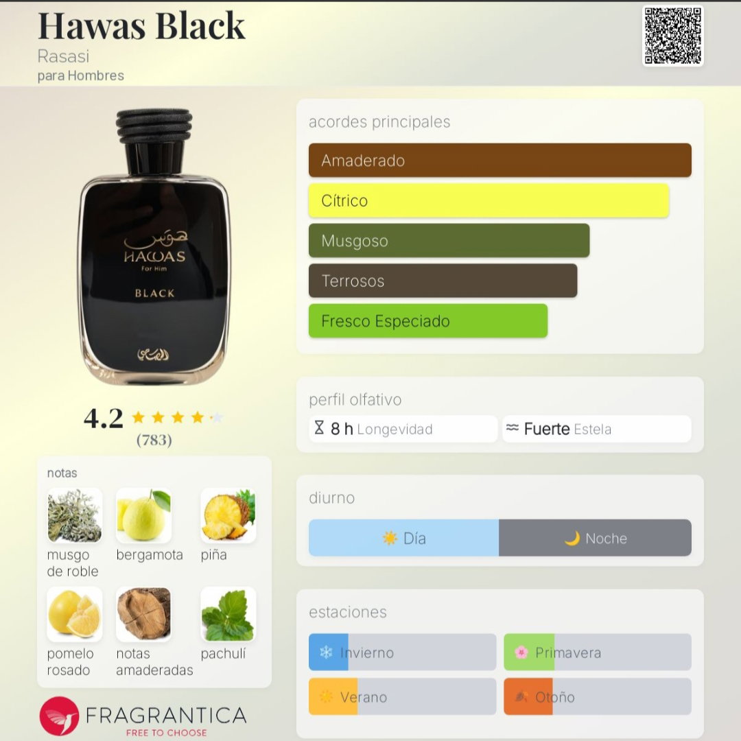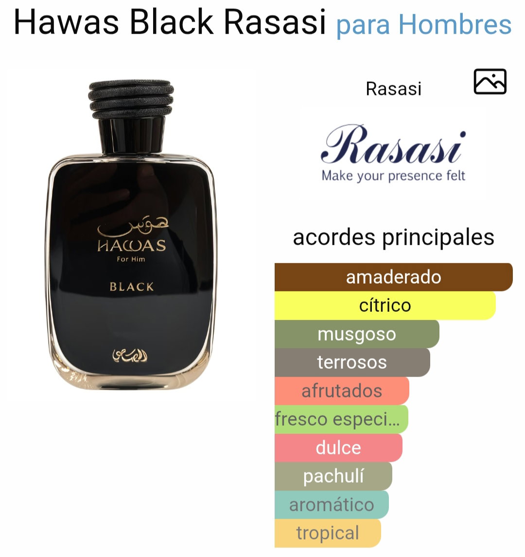 Hawas Black de Rasasi es una fragancia cítrica amaderada para Hombres lanzada en 2024.