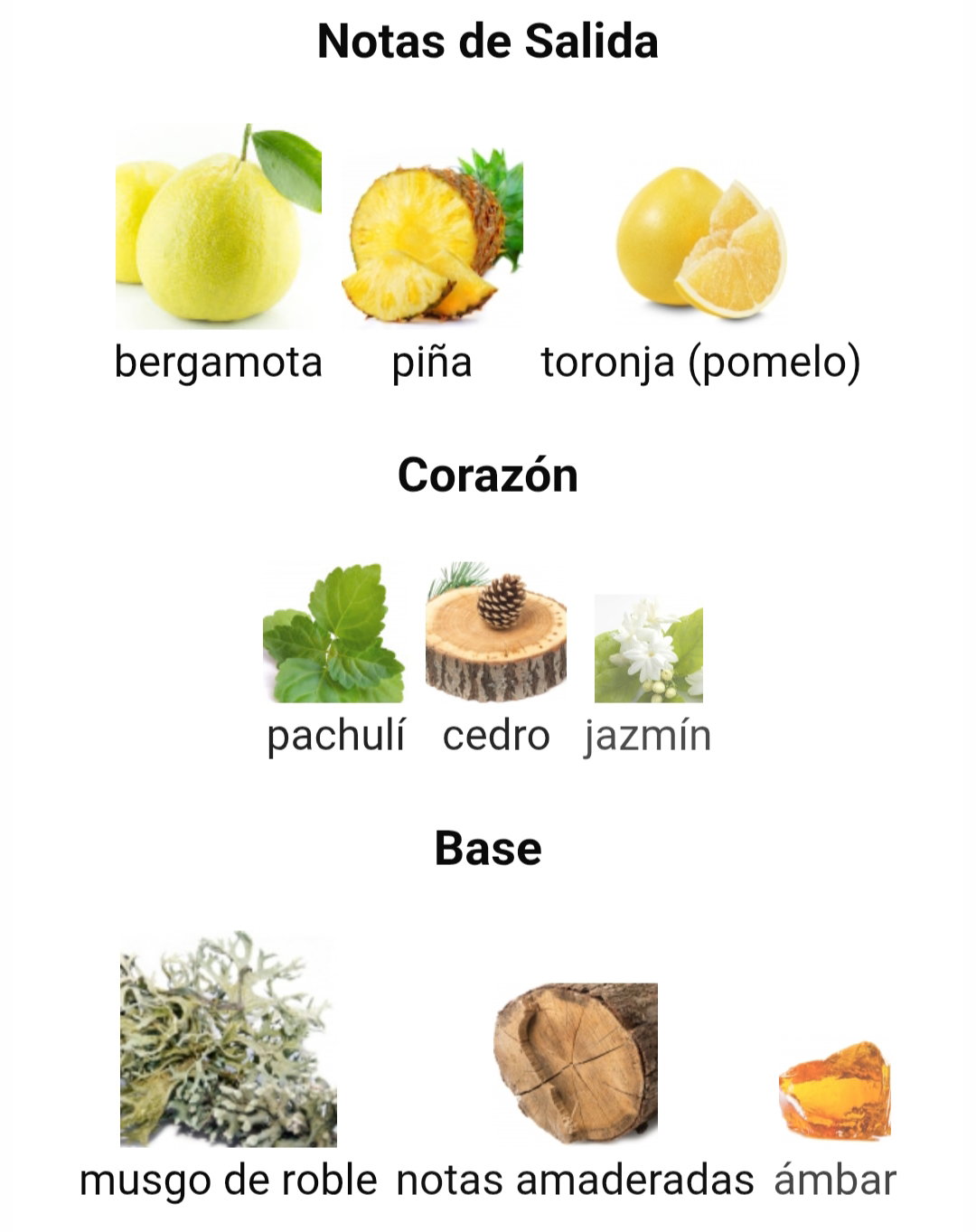 ✔️ Notas de Salida: bergamota, piña y toronja (pomelo)
