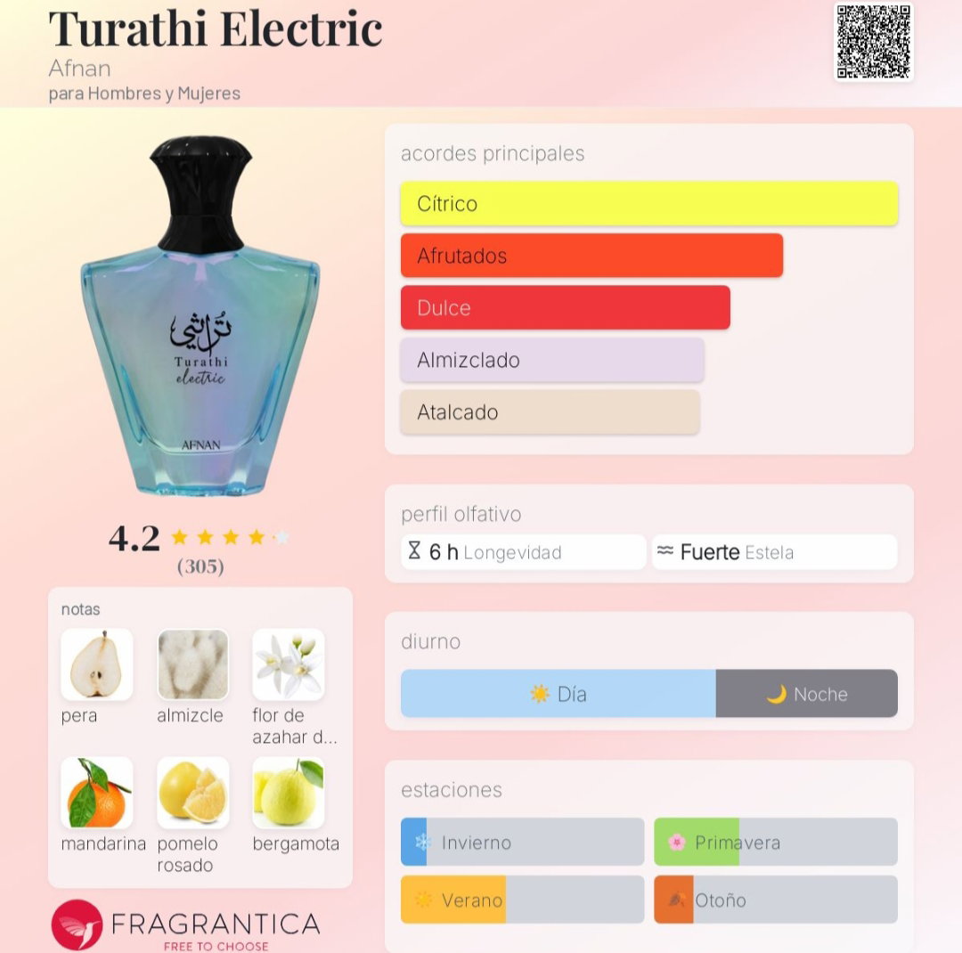 Turathi Electric de Afnan es una fragancia de la familia olfativa Floral Frutal para Hombres y Mujeres lanzada en este 2025.
