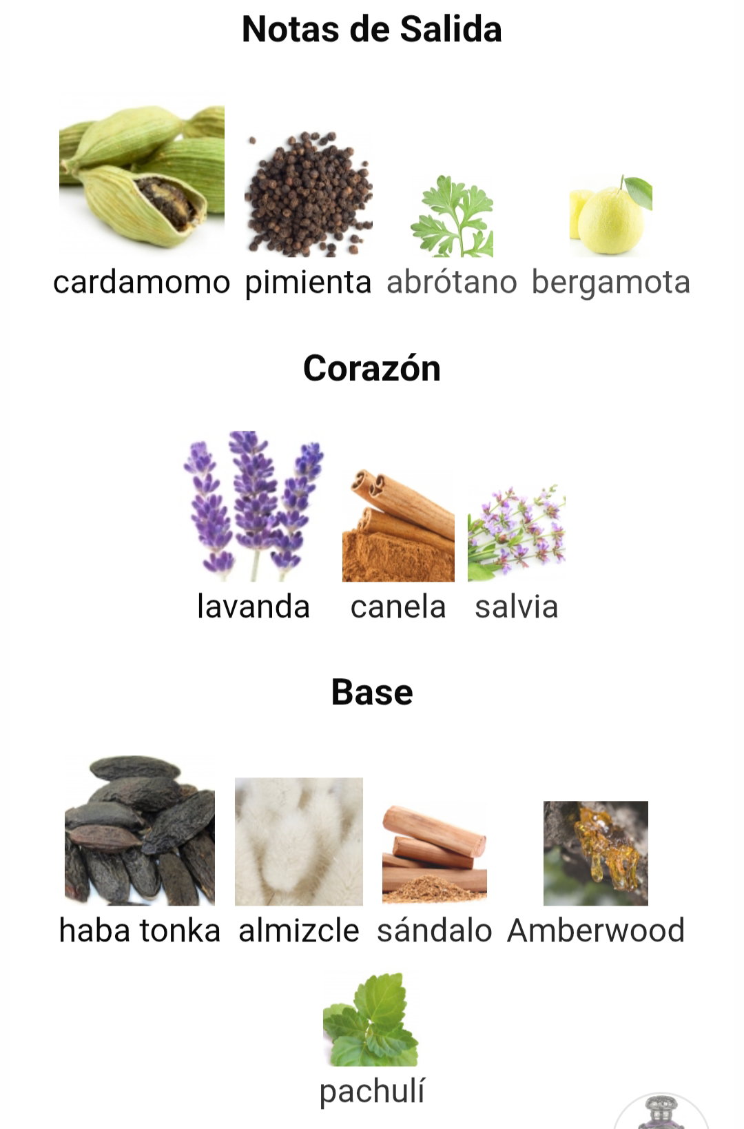 ✔️Notas de salida : Cardamomo, Pimienta, Artemisia, Bergamota.