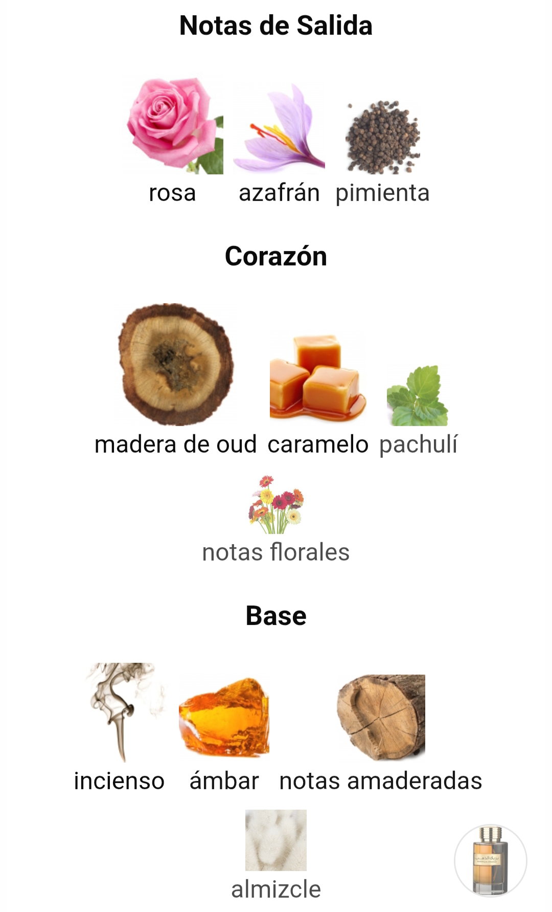 ✔️ Notas de Corazón: madera de oud, caramelo, pachulí y notas florales