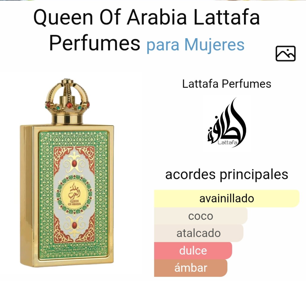 Queen of Arabia de Lattafa es una fragancia audaz y encantadora, creada para la reina moderna. Es una mezcla lujosa que irradia elegancia, fuerza y una feminidad innegable con cada rociado.
