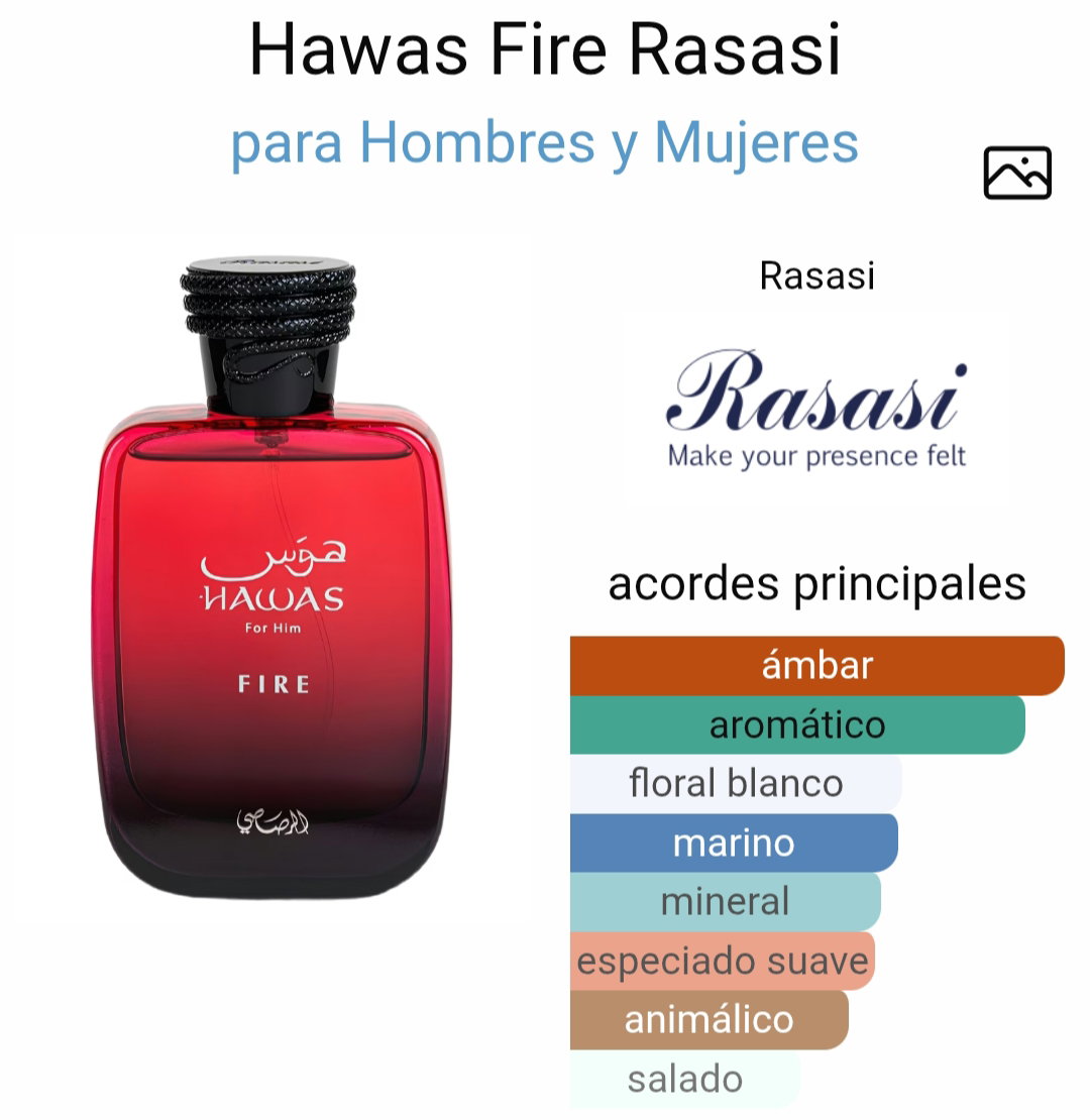Hawas Fire de Rasasi es una fragancia de la familia olfativa Aromática Acuática para Hombres y Mujeres lanzada en 2025.