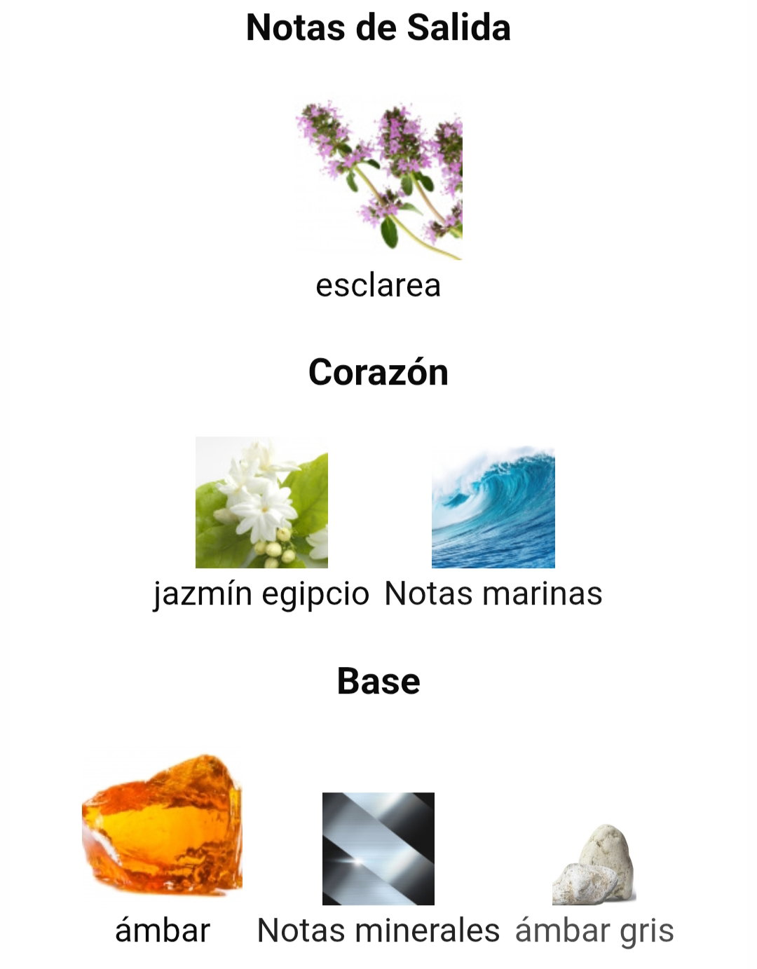 ✔️ Notas de Fondo: ámbar, Notas minerales y ámbar gris.