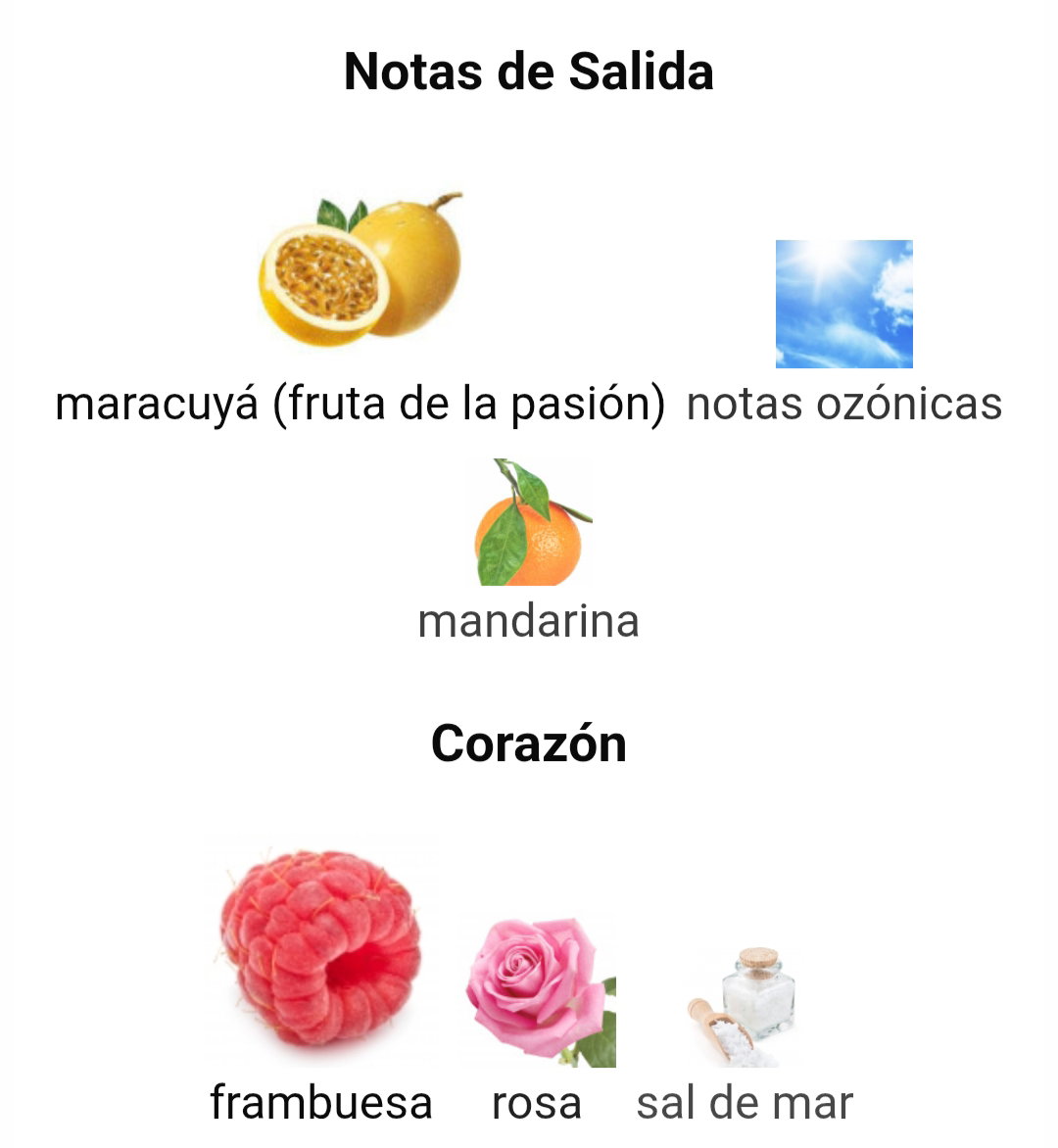 ✔️Notas de salida: Maracuyá, notas ozónicas, mandarina