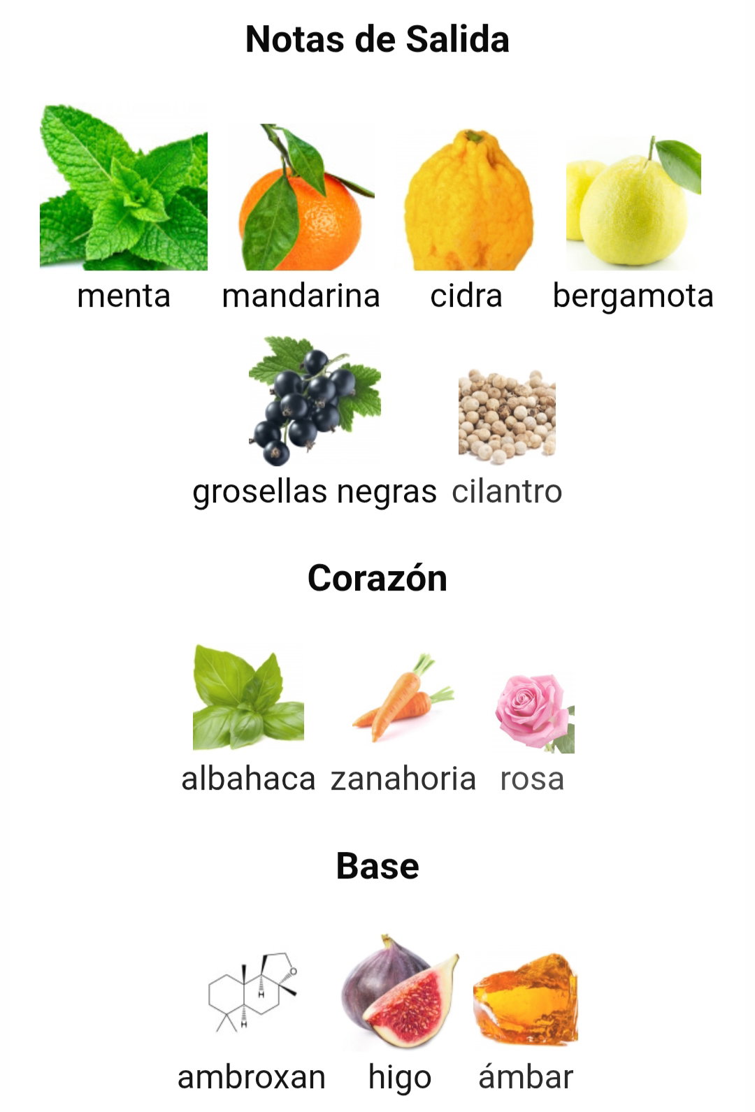 ✔️ Notas de Corazón: albahaca, zanahoria y rosa