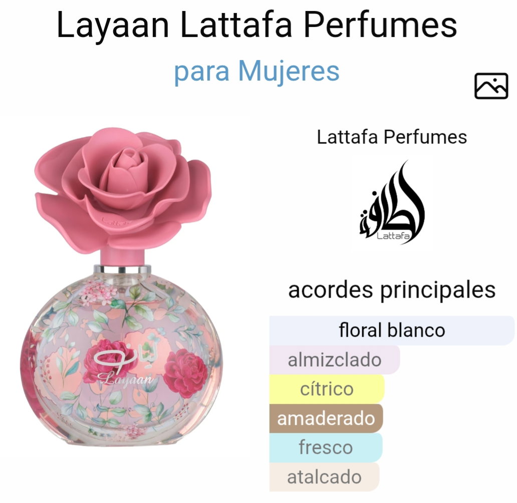 🌹Layaan es una fragancia de la familia olfativa floral frutal para mujeres. Layaan se caracteriza por su aroma fresco, suave y elegante, con un toque floral limpio.