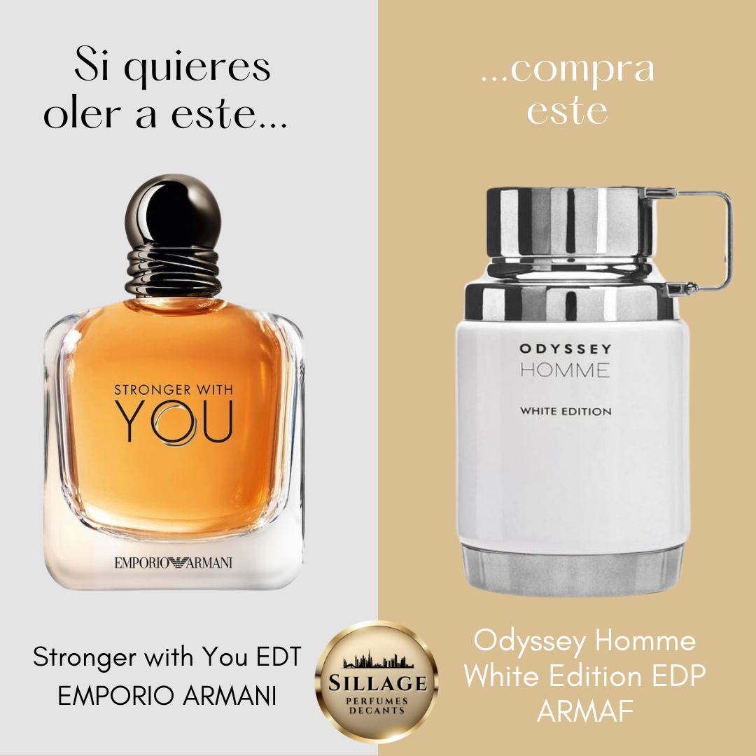 ✔️ Inspiración: Odyssey Homme White Edición replica el perfil dulce, moderno y seductor de Stronger With You EDT de Giorgio Armani, con notas prominentes de vainilla, castañas glaseadas y especias suaves, lo que la hace ideal para climas frescos y ocasiones nocturnas.
