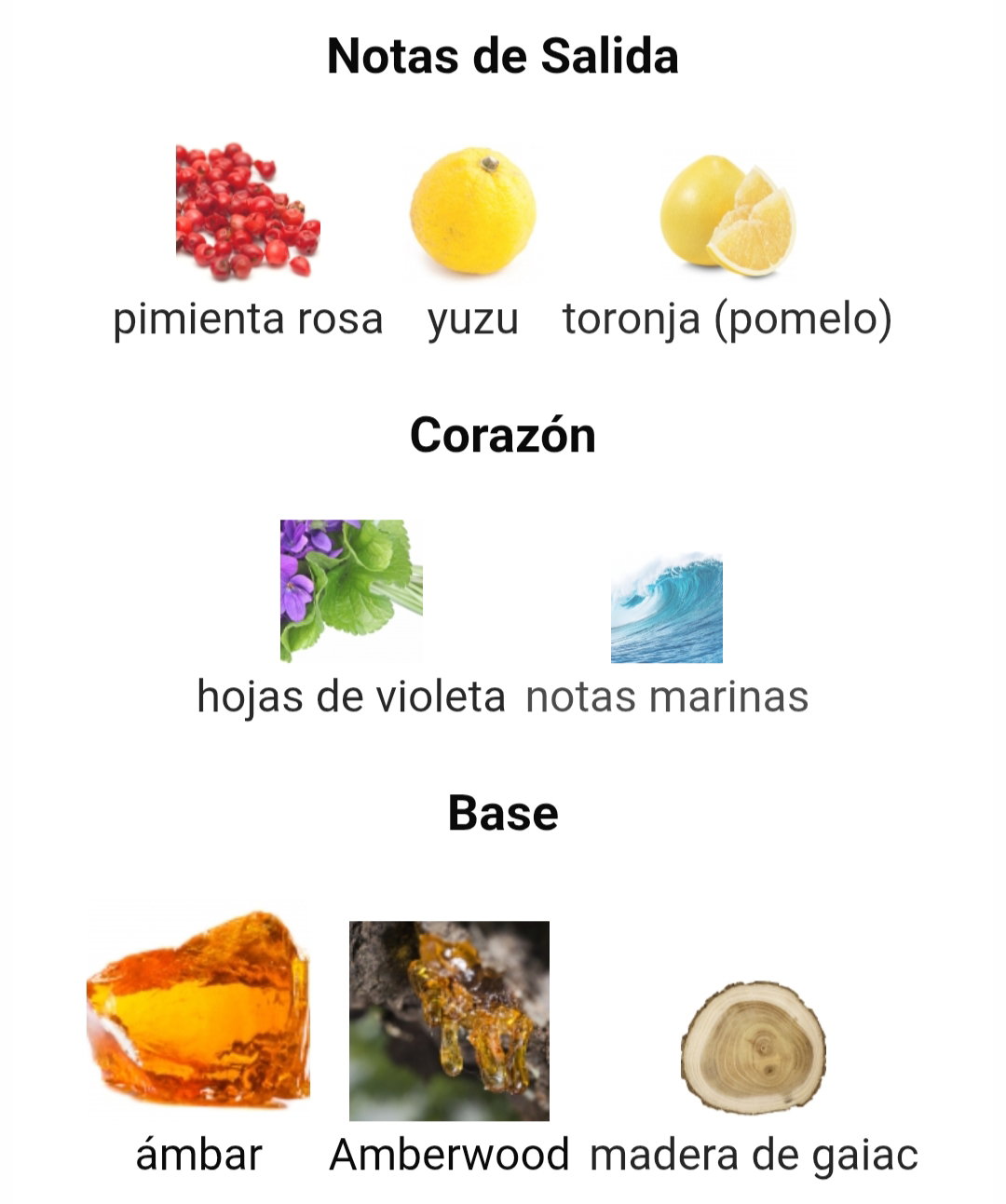 • Notas de Salida: Pimienta rosa, toronja (pomelo) y yuzu.