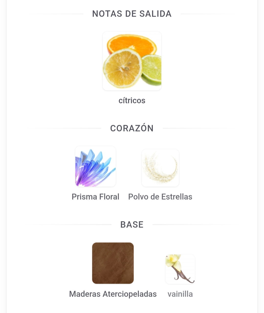 • Notas de Corazón: Acordes imaginarios de "Flower Prism" y "Stardust", que se traducen en sensaciones florales limpias y un toque cremoso afrutado, similar al mango.