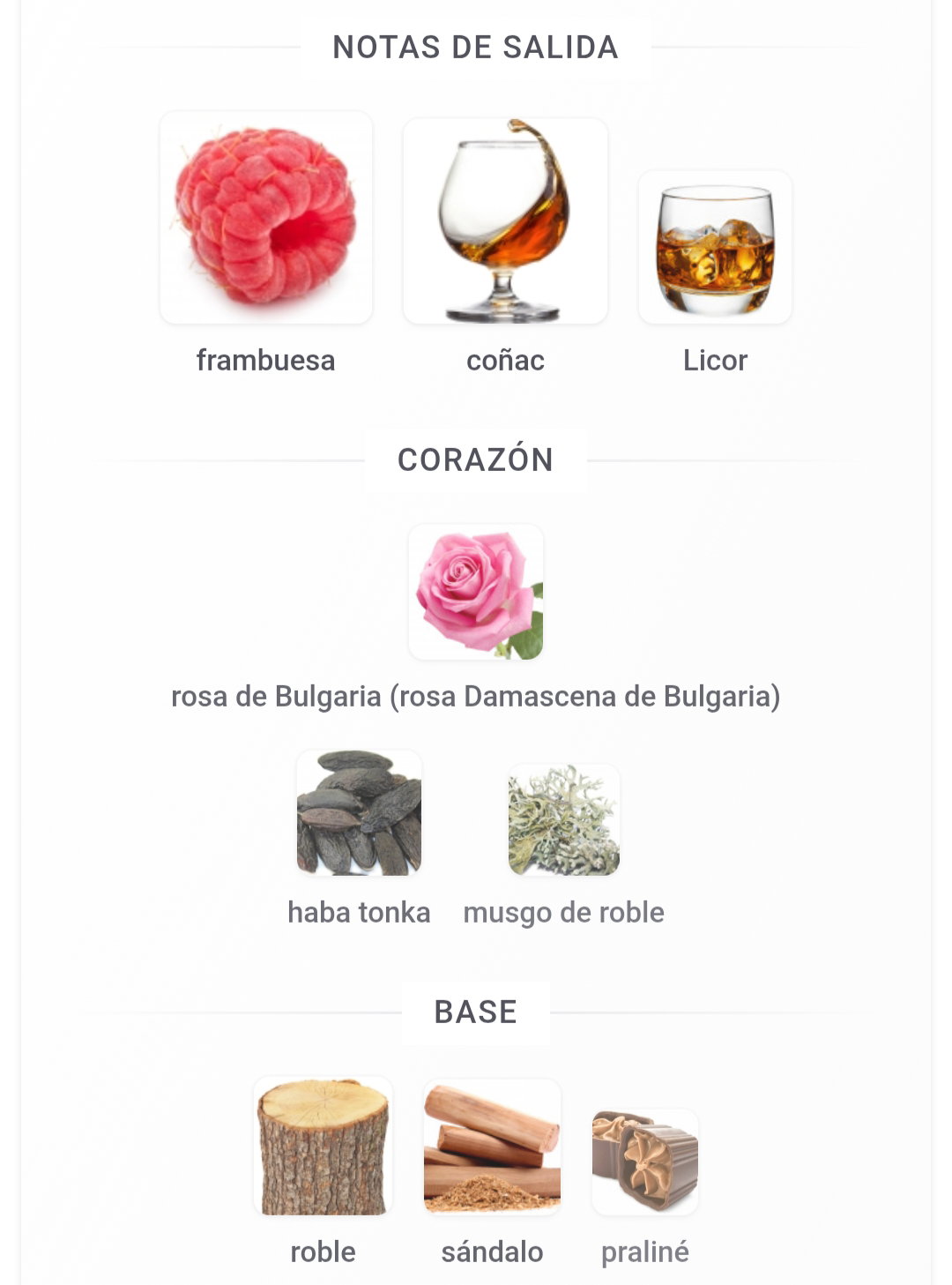 • Notas de Fondo: Roble, sándalo y praliné. Dejan una base amaderada, oscura y potente, con un toque dulce y achocolatado que permanece.