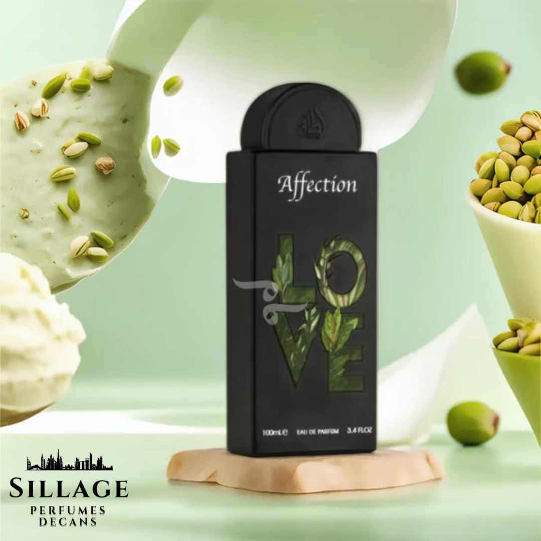 Affection Love de Lattafa Pride es una fragancia gourmand inspirada en Yum Pistacho Gelato de Kayali.