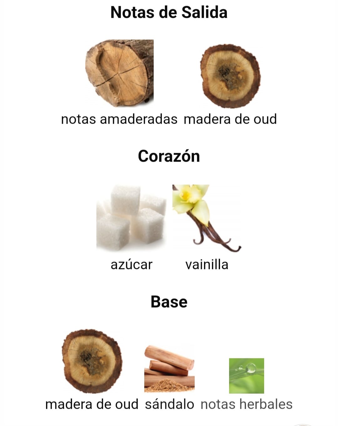✔️ las Notas de Fondo son madera de oud, sándalo y notas herbales.