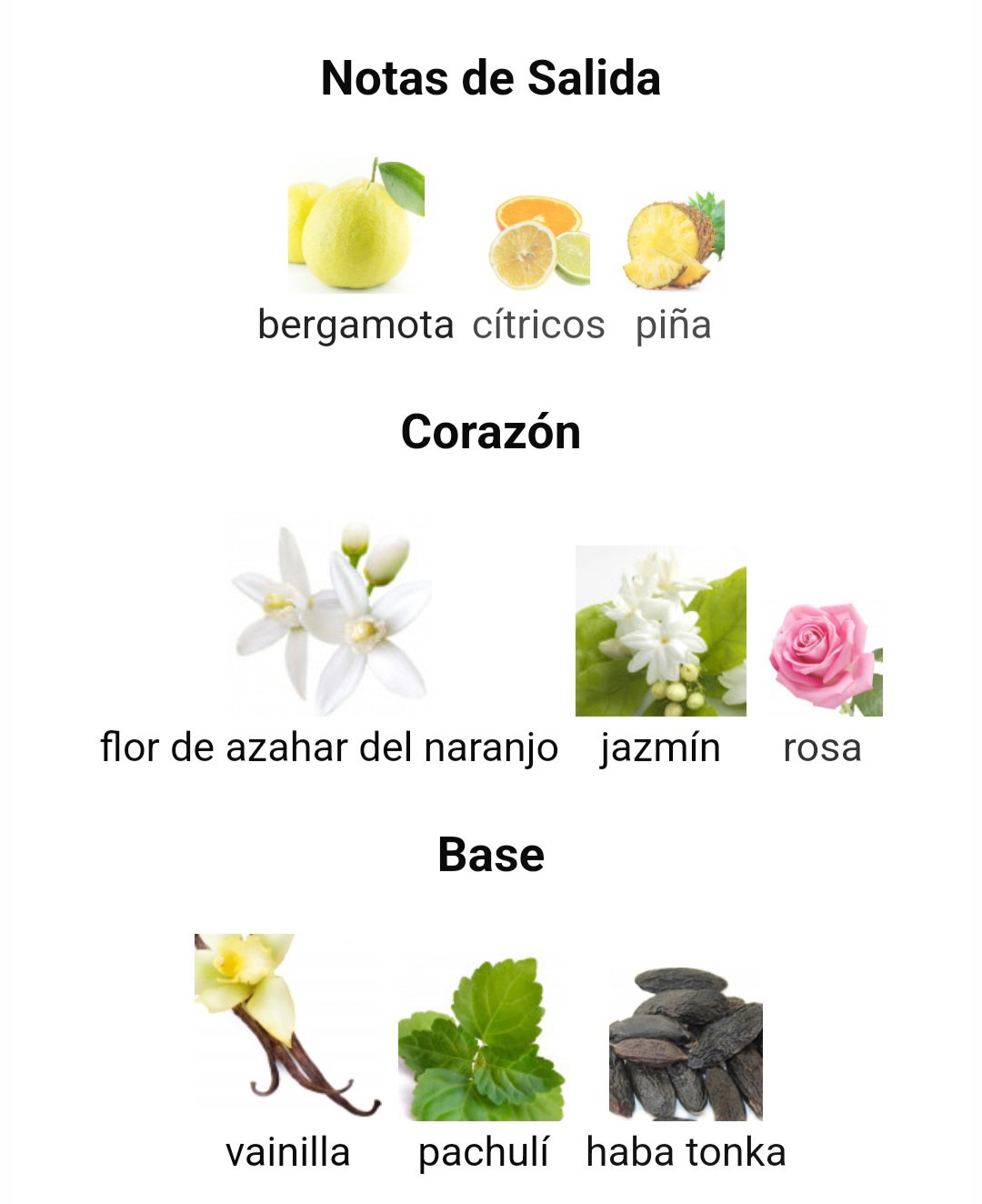 ✔️ Las Notas de Corazón son flor de azahar del naranjo, jazmín y rosa