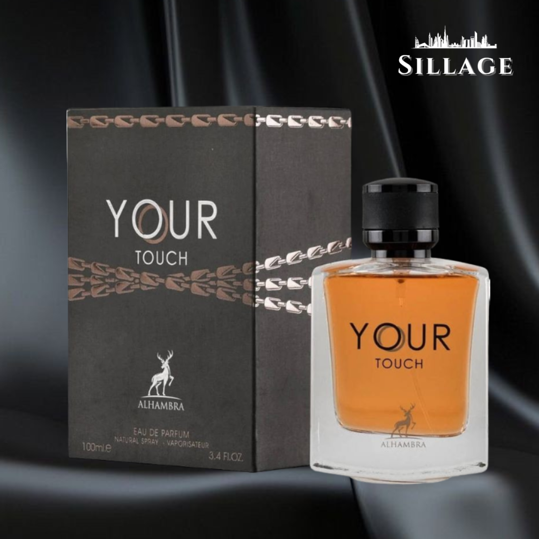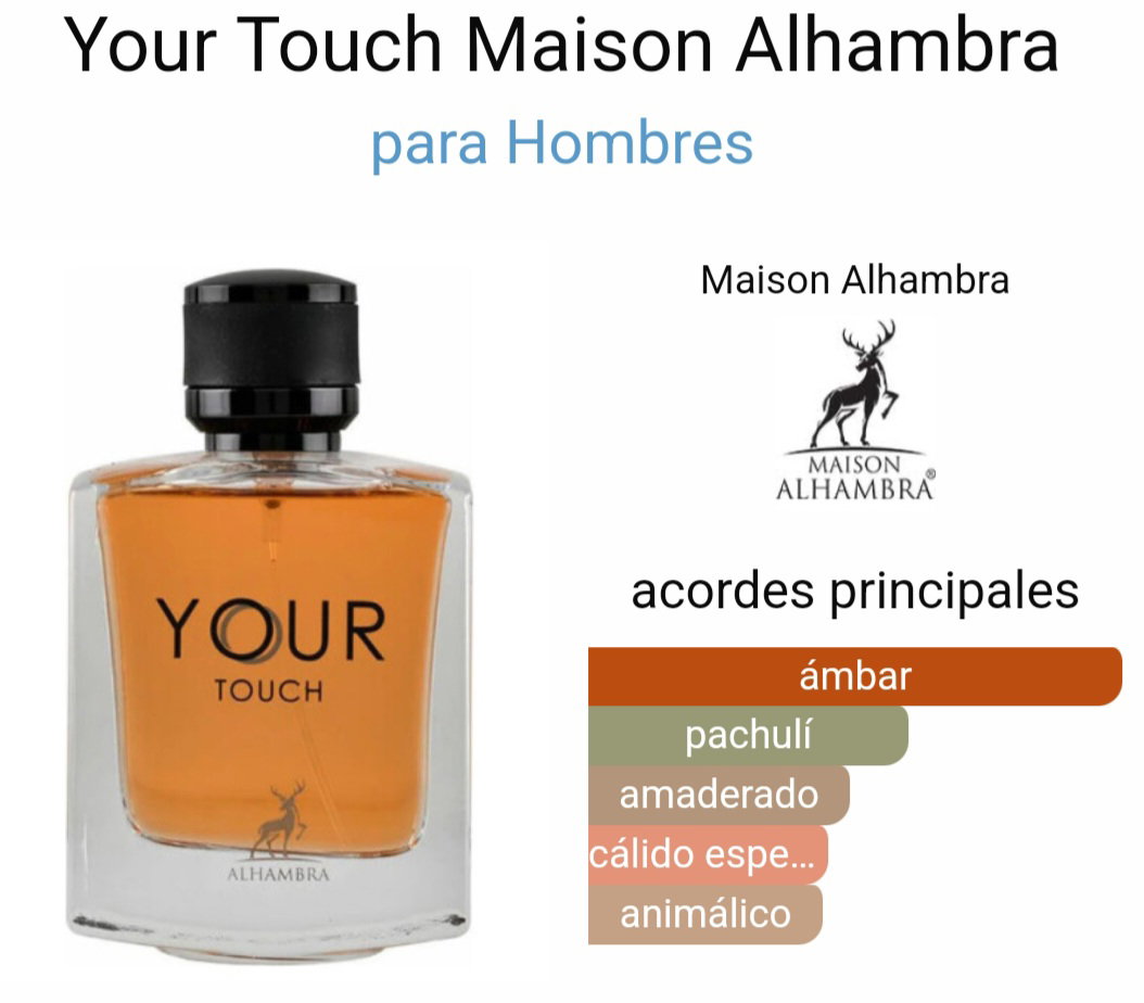 Your Touch es una fragancia amaderada y especiada con matices frutales para hombres.