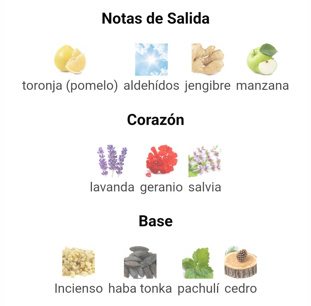 ✔️Las Notas de Salida son manzana, aldehídos, toronja (pomelo) y jengibre