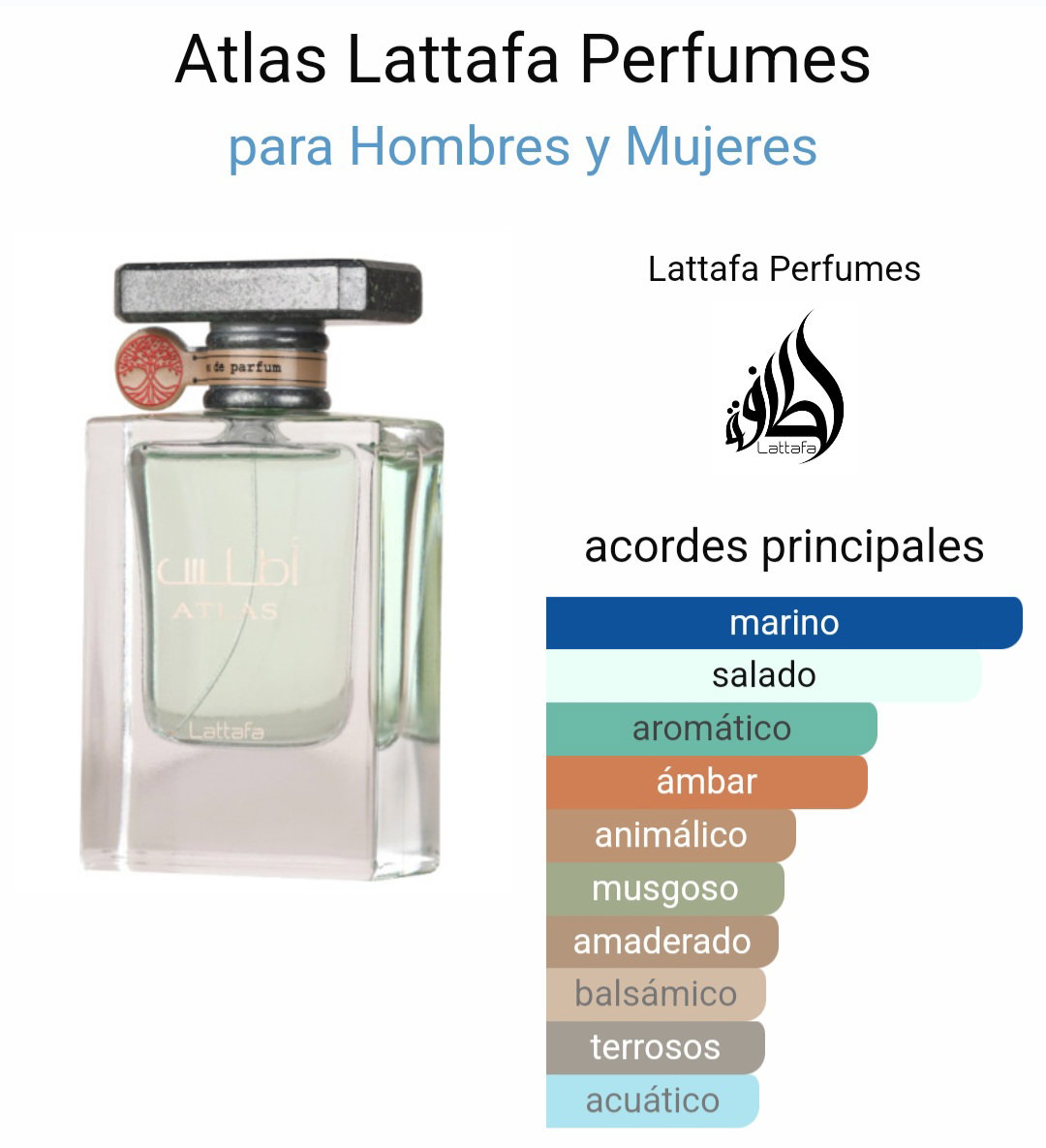 Atlas de Lattafa se caracteriza por sus acordes acuáticos refrescantes e intensos que capturan la esencia del mar.