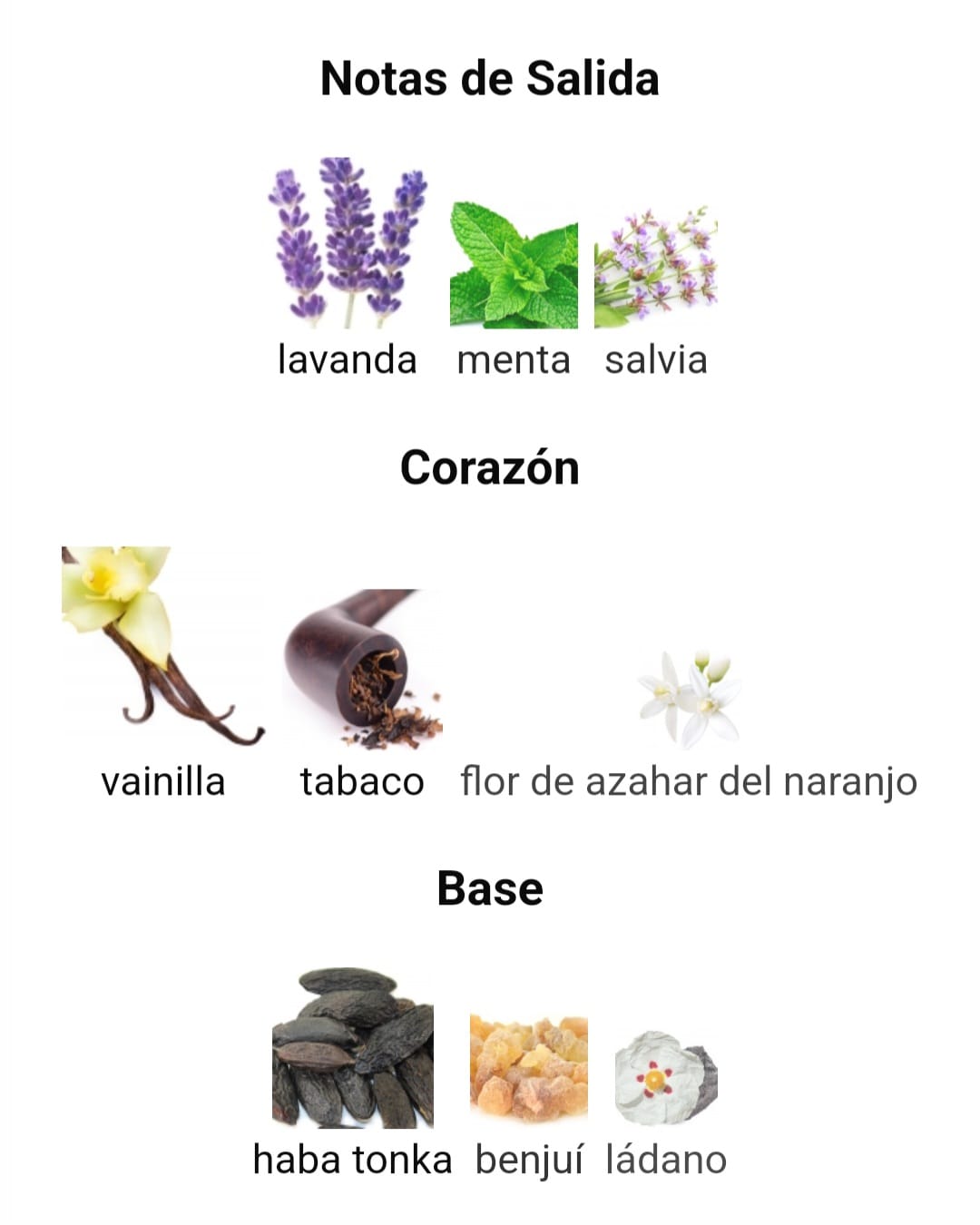 ✔️Notas de Corazón: vainilla, tabaco y flor de azahar del naranjo
