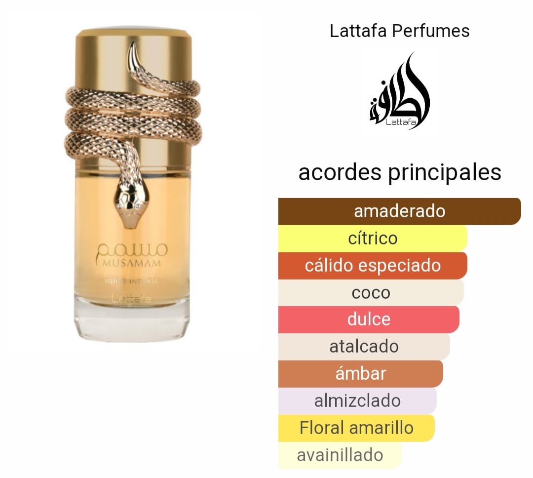 Musamam White Intense de Lattafa es una cautivadora, envolvente y elegante fragancia de la familia Ambarada Oriental. ✨️