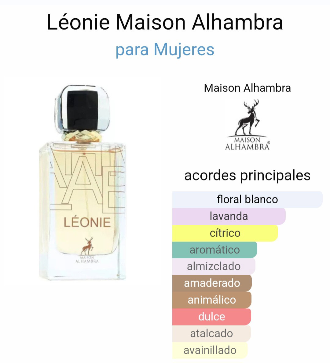 Léonie de Maison Alhambra es una elegante fragancia de la familia olfativa Floral inspirada en la famosa fragancia Libre de YSL.