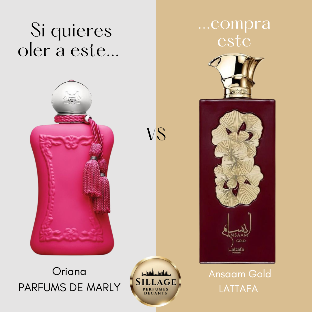 Ansaam Gold de Lattafa es una deliciosa fragancia de la familia olfativa Oriental Floral para Mujeres que te llenará de cumplidos. Ansaam Gold fue un éxito desde su lanzamiento en 2022 y está inspirada en la exclusiva fragancia Oriana de Parfums de Marly.❤️✨️