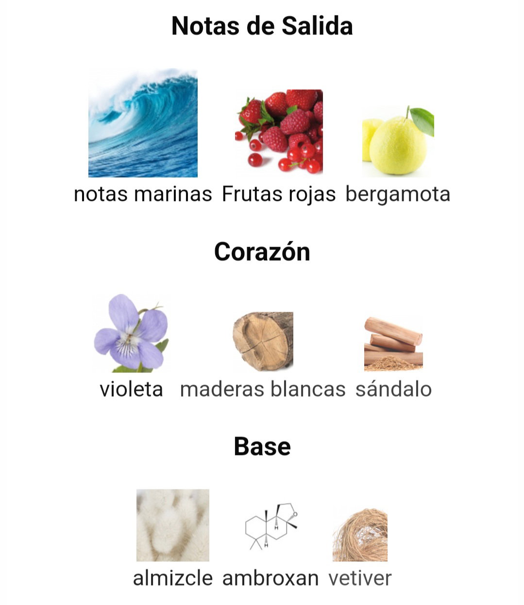 ✨️Notas de Salida: notas marinas, Frutas rojas y bergamota