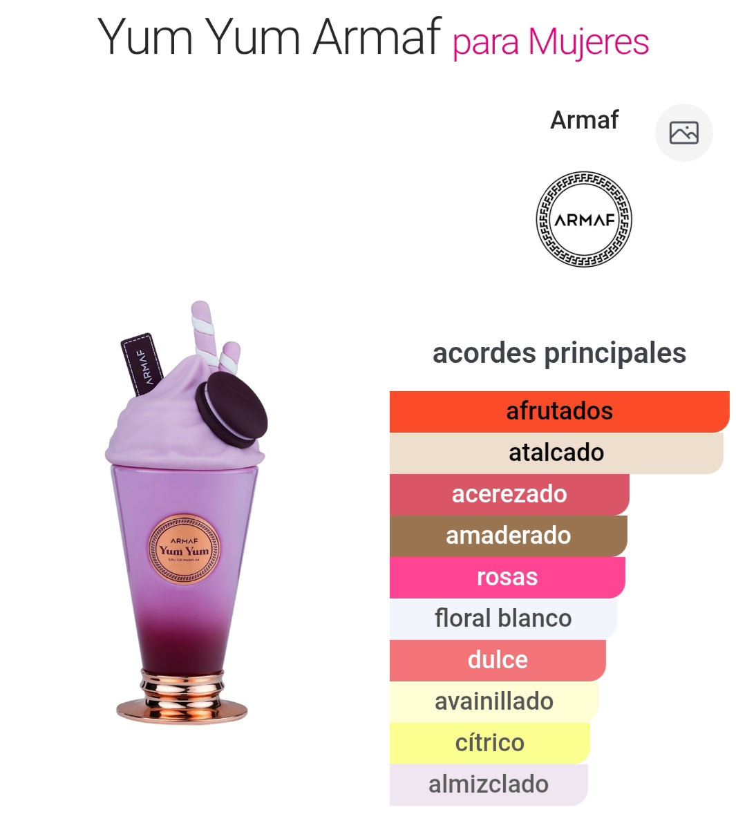 Yum Yum es una fragancia femenina de la familia olfativa Floral Frutal, lanzada en 2024 como parte de la línea "Delights" de Armaf. Yum Yum es conocida por su aroma dulce, juguetón y "gourmand", sin ser empalagosa.
